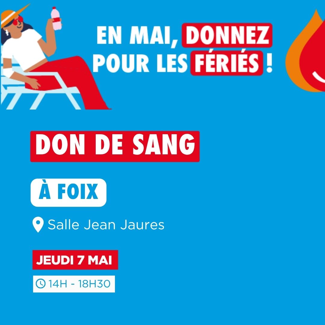 Don de sang le jeudi 7 mai, salle Jean Jaurès à la mairie de 14h à 18h30